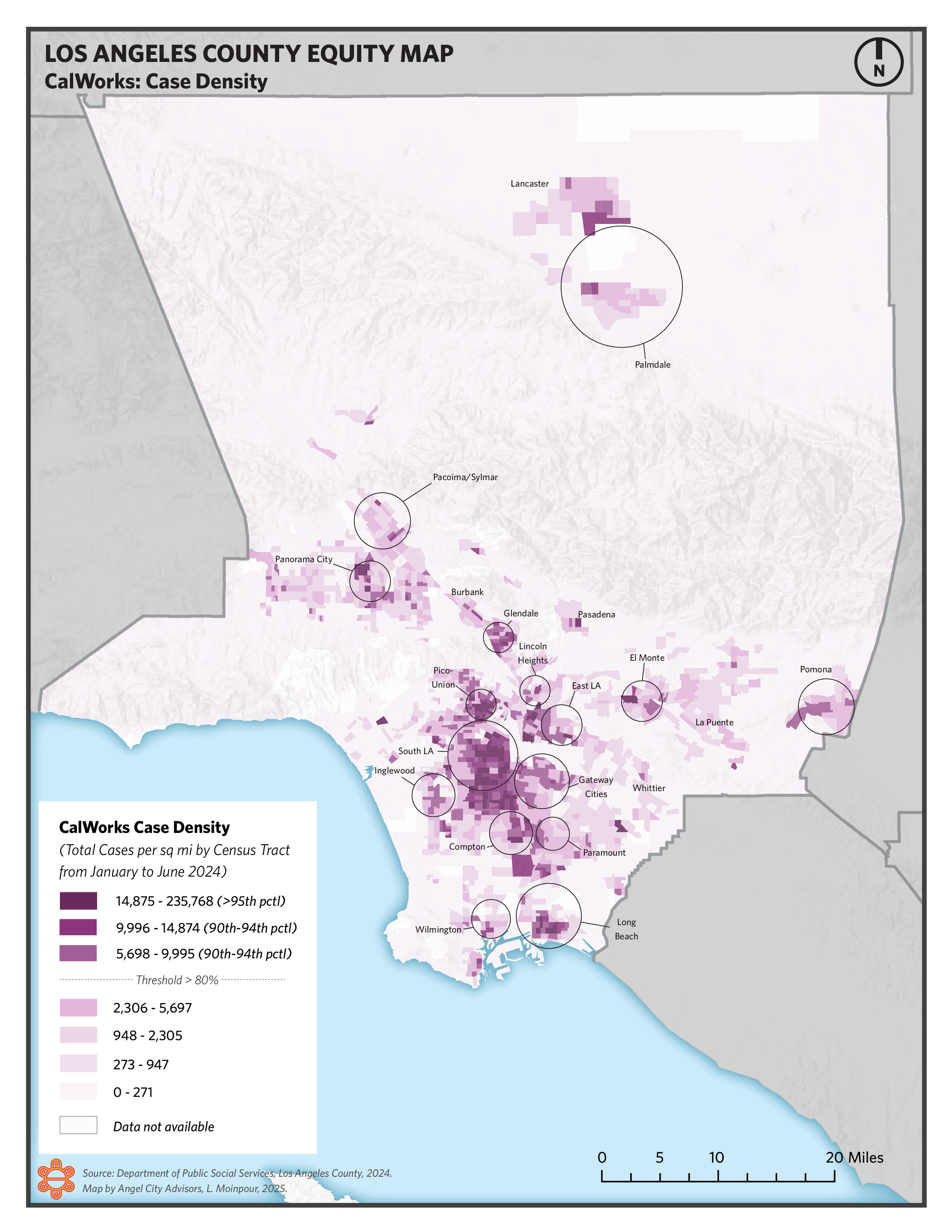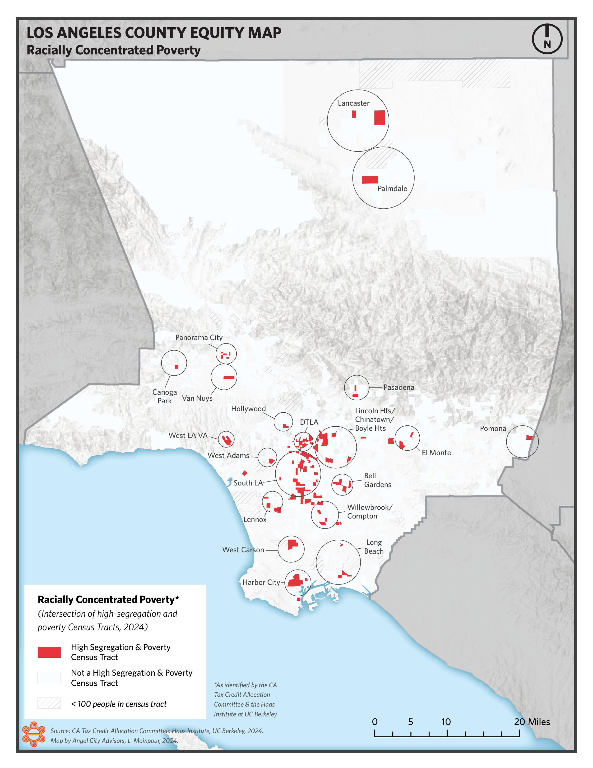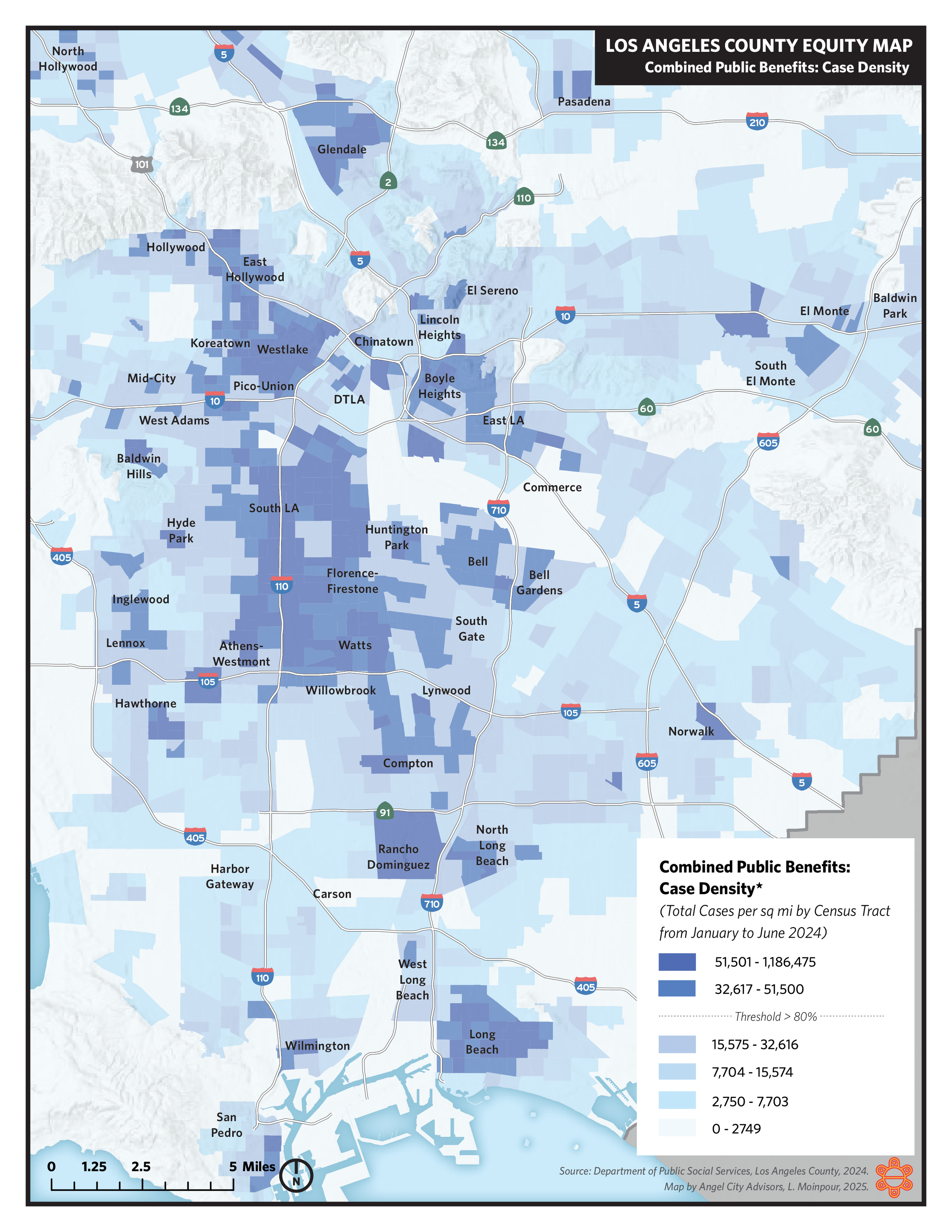 For community benefit, Angel City is proud to offer the 2025 Los Angeles Equity Mapbook. The product is a collection of 46 maps that visualize injustice and exclusion (and opportunity) across the Los Angeles County region. Since the national civil unrest of 2020, we have been collecting various County-wide data sets – some public, others not – and mapping them across our region. These maps are for you to use, cite, and ACT upon. We were proud to release our first Equity Mapbook in 2020 at a time of racial reckoning in America, and are pleased to have now released our first update with additional maps and an updated underlying data set.